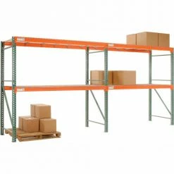 Strong, 2″ x 4″, 6-gauge gray baked enamel finished wire decking features welded construction and 14 gauge channel supports. Unlike wood or metal decking, wire permits light, air and sprinkler penetration; allows a clear view of upper tiers; and minimizes dust and debris accumulation. Easy installation — simply drop into place over beams. Use with beams that have 1-1/2″ or 1-5/8″ step. 2750 lb. capacity.