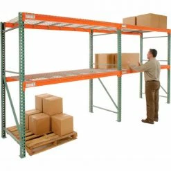 Strong, 2″ x 4″, 6-gauge gray baked enamel finished wire decking features welded construction and 14 gauge channel supports. Unlike wood or metal decking, wire permits light, air and sprinkler penetration; allows a clear view of upper tiers; and minimizes dust and debris accumulation. Easy installation — simply drop into place over beams. Use with beams that have 1-1/2″ or 1-5/8″ step. 2500 lb. capacity.