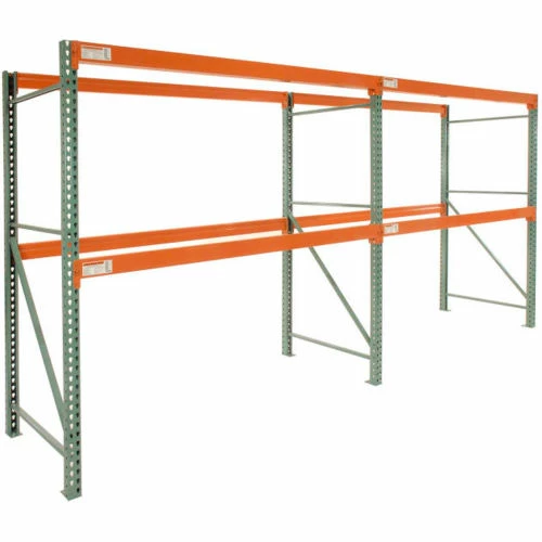 Premium quality pallet racks at a low price. Global Industrial pallet racks offer quick and easy, tool free assembly for all your pallet storage needs. These pre-configured starter and add-on industrial storage rack systems are made of durable heavy gauge steel for years of service. Add-on unit includes 1 upright frame and 2 pairs of shelf beams. Heavy duty, one-piece 13 gauge steel uprights allow height adjustments at 2″ increments for easy beam adjustment. High strength 15 gauge steel beams have a 1-5/8″H step beam design that accommodates cross bars and decking. Beams provide secure connection to upright frame using a positive 6-way locking action; right to left, front to back and up and down. Lock automatically snaps into place and secures beam. Welded braces provide maximum rigidity and stability. 3-1/4″ x 4-1/4″ x 12 gauge welded base plate anchors upright to floor and distributes weight evenly. Uprights feature a long lasting epoxy finish. The pallet should overhang the frame by 3″ front and back. Interchangeable with Teardrop styles of the following manufacturers: Interlake, Kingway, Steel King, USP, Wireway/Husky, Unarco and Speed Rack. Easy assembly.