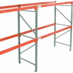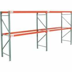 Premium quality pallet racks at a low price. Global Industrial pallet racks offer quick and easy, tool free assembly for all your pallet storage needs. These pre-configured starter and add-on industrial storage rack systems are made of durable heavy gauge steel for years of service. Add-on unit includes 1 upright frame and 2 pairs of shelf beams. Heavy duty, one-piece 13 gauge steel uprights allow height adjustments at 2″ increments for easy beam adjustment. High strength 15 gauge steel beams have a 1-5/8″H step beam design that accommodates cross bars and decking. Beams provide secure connection to upright frame using a positive 6-way locking action; right to left, front to back and up and down. Lock automatically snaps into place and secures beam. Welded braces provide maximum rigidity and stability. 3-1/4″ x 4-1/4″ x 12 gauge welded base plate anchors upright to floor and distributes weight evenly. Uprights feature a long lasting epoxy finish. The pallet should overhang the frame by 3″ front and back. Interchangeable with Teardrop styles of the following manufacturers: Interlake, Kingway, Steel King, USP, Wireway/Husky, Unarco and Speed Rack. Easy assembly.