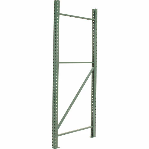 Welded upright frames are made with 13-gauge steel. Punched on 2″ centers for easy beam adjustment. Long lasting baked-on enamel finish.