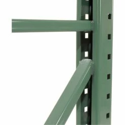 Welded upright frames are made with 13-gauge steel. Punched on 2″ centers for easy beam adjustment. Long lasting baked-on enamel finish.