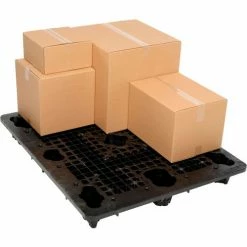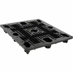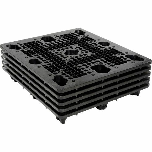 The Global Industrial Nestable Plastic Pallets resist weather, splitting mildew and rot. They outlast other plastic pallets because they’re made from USDA-approved, 100% recyclable black polyethylene. ISPM51 exempt for export shipping. Nest up to 31 pallets to a height of 8′ for efficient storage when not in use. Sturdy construction gives these plastic pallets a 2,750 lb. fork capacity and 15,000 lb. floor capacity. Allows 4-way forklift. Improved textured surface helps to prevent slipping.