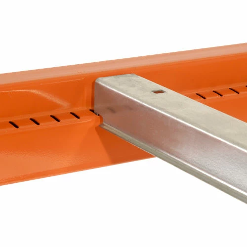 Helps prevent undersized pallets from falling through. Beams are notched for roll-in cross bar.