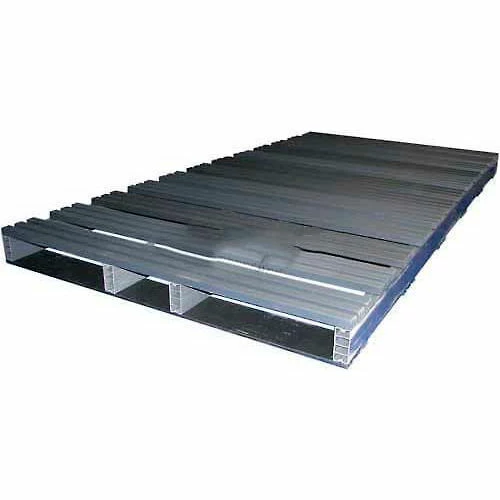 Extruded plastic pallets provide superior performance and benefits over traditional wood. Ideal for exporting applications. Made using 100% recycled rigid PVC plastic for water, fire and flame resistance. Plastic is impervious to contamination and infestation. Supported cross bars are required for pallet racking. Custom sizes and colors are available, call for details.