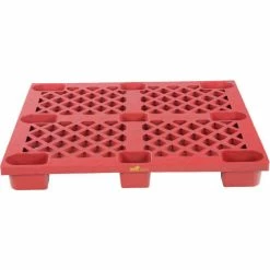Plastic pallets are ideal for export, pharmaceutical, medical and food applications. Made using recycled plastic for long life. Allows 4-way fork lift access with 12-9/16″W x 3-3/4″H fork openings. Features serrated deck with holes for drainage. Polyethylene plastic skid features 660 lb. dynamic and 3300 lb. static capacity. Measures 47″W x 39-1/4″L x 5-1/2″H overall (Dimension tolerance ± 1/4″)