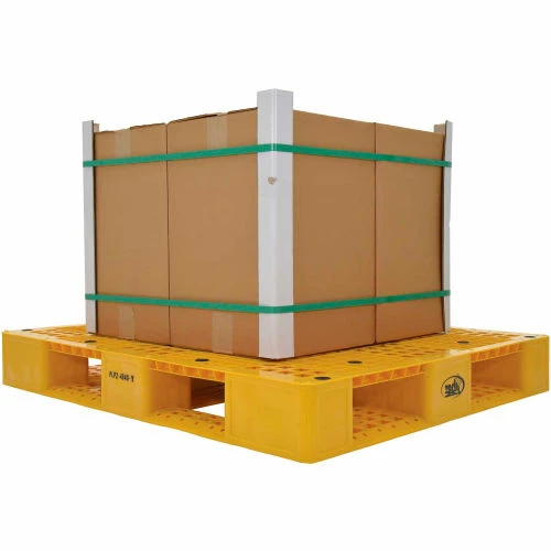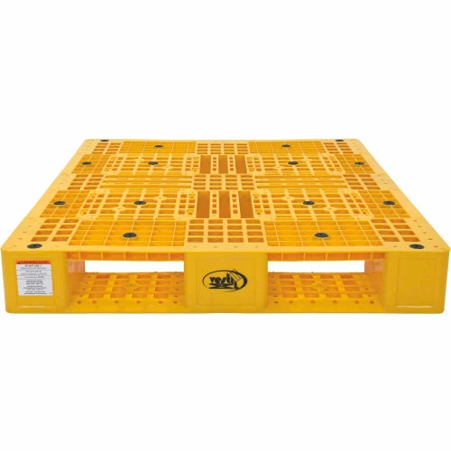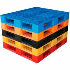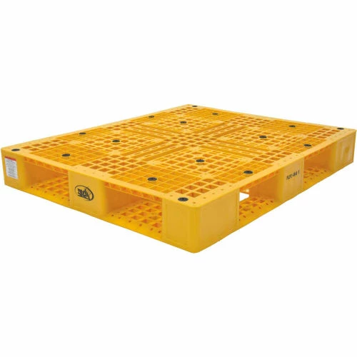 Ideal for export, pharmaceutical, medical and food applications. These plastic pallets allow stacking for efficient storage. Industrial pallets are made with recycled plastic that provides long life and maintenance-free service. Stackable pallets allow 4-way fork access for forklifts and pallet trucks. Fork opening 10-1/4″W x 3-3/4″H Plastic pallets feature a serrated deck that allows drainage. These pallets are not for use in unsupported pallet rack.